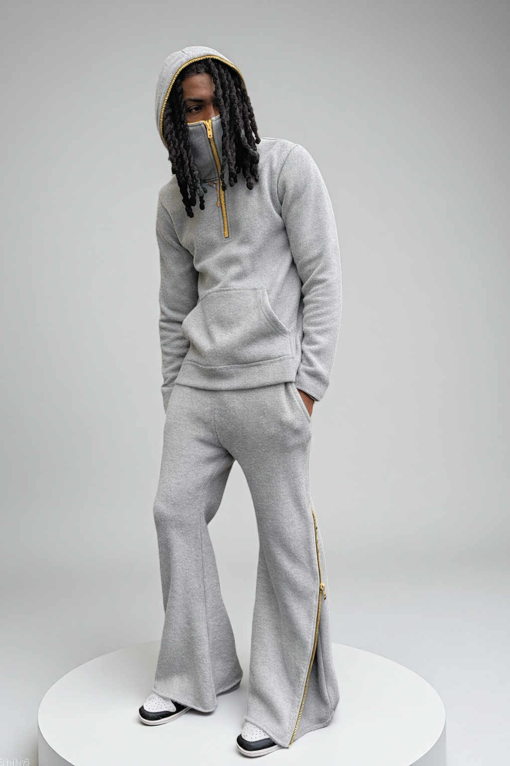 Quarter-zip face-covering hoodie